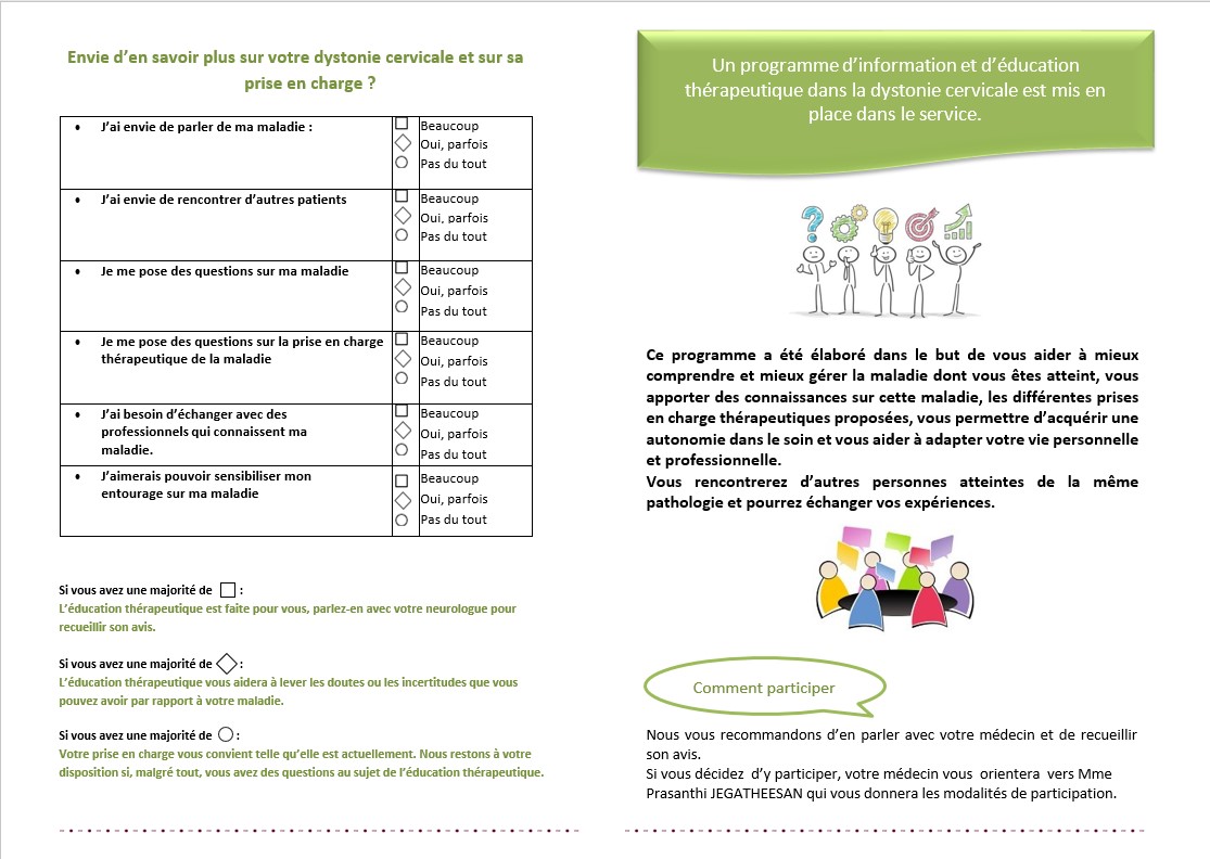 L’objectif sera de proposer un programme d’éducation thérapeutique pour encourager l’adhésion thérapeutique, favoriser l’autonomie dans le soin, rendre le patient acteur de sa prise en charge, et réduire le retentissement personnel et émotionnel lié à la maladie.